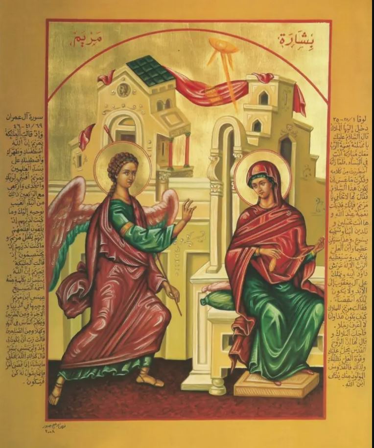 « Gloire à toi, qui es descendu des hautes et mystérieuses demeures de ton Père, et t'es fixé dans le sein de Marie, la Vierge . Quand tu as voulu habiter sur terre avec les hommes, tu as envoyé l'archange Gabriel pour annoncer à la Vierge sa conception. Tu es la salutation que Gabriel fit parvenir à la Vierge Marie, tu es le Puissant qui s'est fixé pour la demeure gardée pure, et tu en es sorti homme et Dieu.